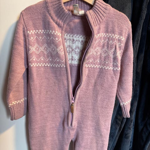 Reflex ullsett for jente i størrelse 104. Sett i myk merinoull, består av genser med høy hals og glidelås foran, samt matchende bukse. Ribbestrikket struktur og rosa farge med markerte kanter.