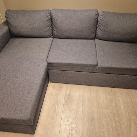 Sofaen passer til stue eller oppholdsrom der det er behov for en kompakt hjørneløsning med sjeselong. Er innebygd sovesofa.