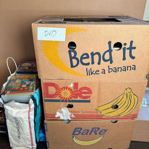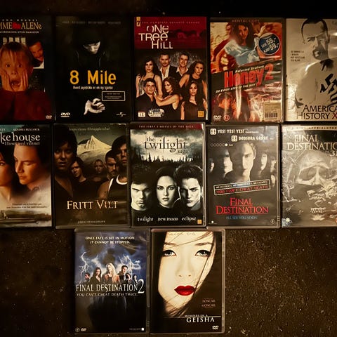 Hyllene følger ikke med, men filmene blir pakket i kasser.