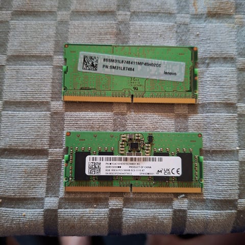 Innegral og Micron DDR3 SODIMM minnebrikker for bærbar PC. Én brikke er på 2 GB DDR3 PC3-12800, og én brikke er på 4 GB DDR3 (spesifikasjoner fremgår av etiketten på brikken). Begge er i SODIMM‑format og passer til kompatible bærbare PC-er og andre enheter som bruker DDR3 SODIMM-minne.