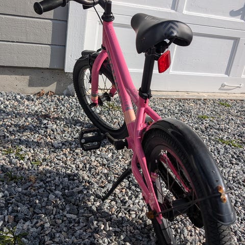 Perfekt hjelpehåndtak som kan monteres på sykkelen slik at man kan holde i dette bak barnet og hjelpe med å holde balansen.