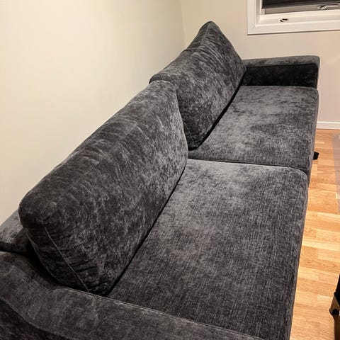 Hjørnesofa som kan trekkes ut til å bli sovesofa. Må hentes
