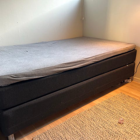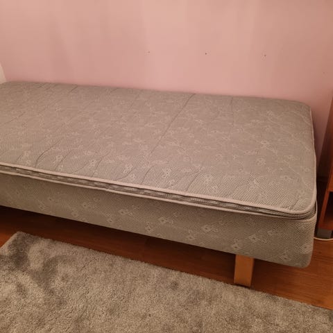 Gir bort en brukt 120cm seng uten overmadrass. Sengen har stått som gjesteseng de siste årene. Har noen bruksmerker nede på kanten av sengen. Må hentes innen fredag 6.mars.