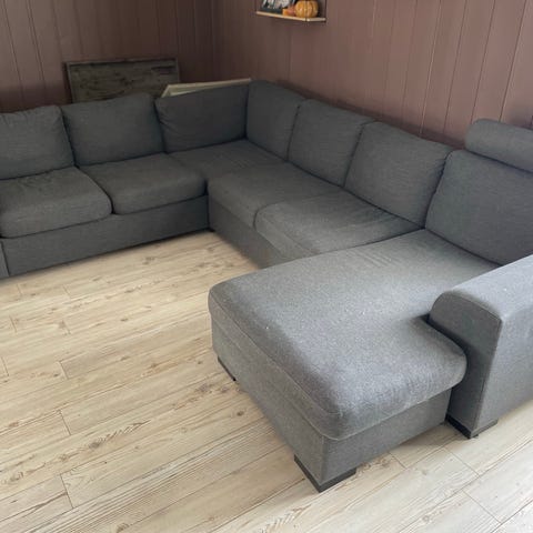 Selger fin mørk grå sofa m/sjeselong ca 5 år. Selger pga over til vanlig sofa 3 seter.