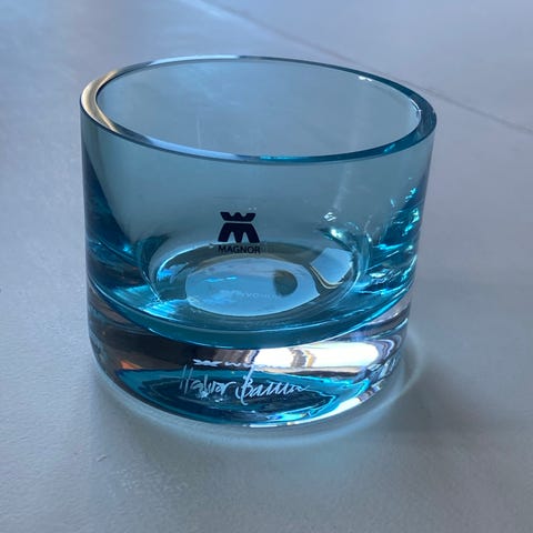 Magnor Glassverk lyslykt blått glass