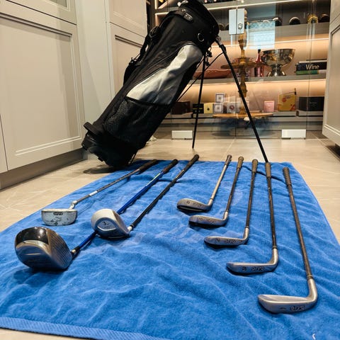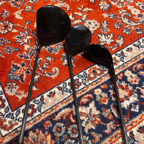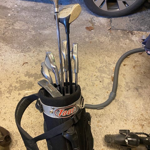 Dunlop Loco golfkøllesett bestående av driver, 3-wood, 5-wood og putter. Køllene har metallhoder og standard lengde skaft. Sett med tre blå headcovers til driver, 3-wood og 5-wood følger med, merket med tallene 1, 3 og 5. Egnet for bruk på golfbane og treningsfelt. Bra for nybegynner. Selges samlet for kr. 600. Må hentes.