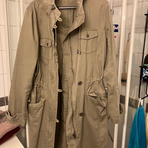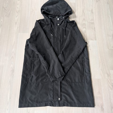 Pen kåpe med nydelige detaljer, glidelås og hette. Broderi fremme ved lommen og bak på ryggen. Størrelse 42-44.