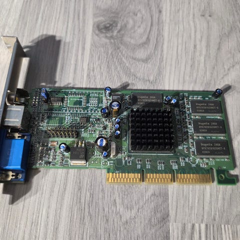 Skjermkortet bruker AGP-grensesnitt og er beregnet for eldre hovedkort med AGP-slot. Kortet har VGA-utgang for tilkobling til skjerm, samt TV-ut-funksjon ifølge merkingen på baksiden (TV-OUT). Passer til systemer som krever et AGP-baserte skjermkort, for eksempel eldre PC-er eller retro-oppsett.