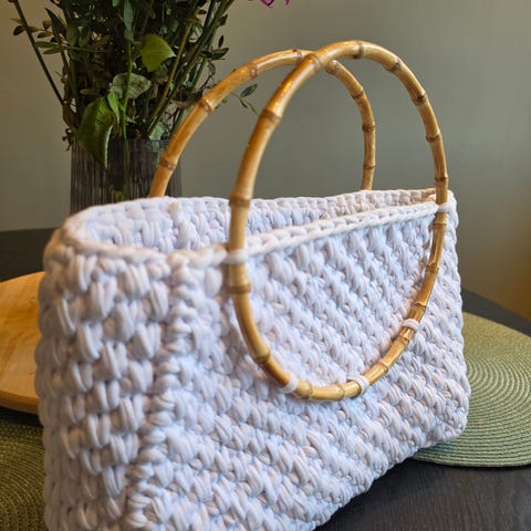 SĂžt veske med bambushank/bambusramme som kan brukes pĂ„ to mĂ„ter â du kan vende den og fĂ„ enten rosa side eller den mĂžnstrede siden. Litt sĂ„nn â2 vesker i 1â, og perfekt til sommer, ferie og kjoler. Se bilder for mĂ„l. đž