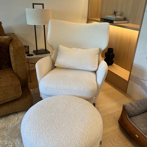 Selger en kjempefin lenestol i teddy kjøpt på Jysk for 2300kr i 2025. Har stort sett stått ubrukt og fremstår som ny. God å sitte i. Se siste bilde for mål.