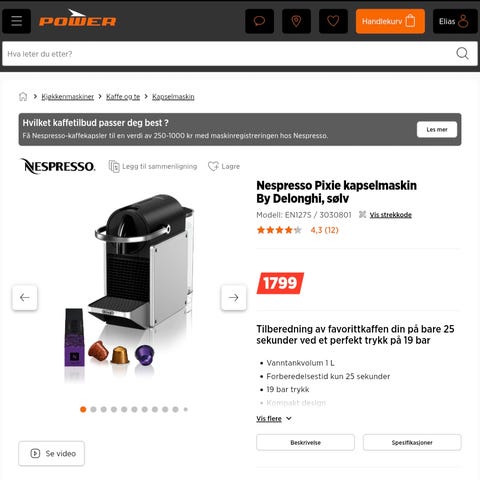 Kaffemaskin med 3 ulike adapter selges. Nespresso kapsler, Dolce gusto,tassimo