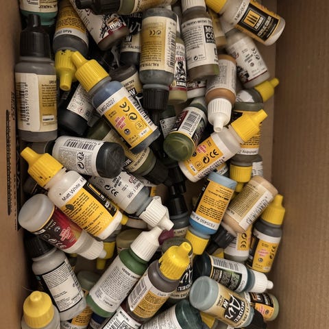 Div pulvermaling til porselsdukker selges samlet .