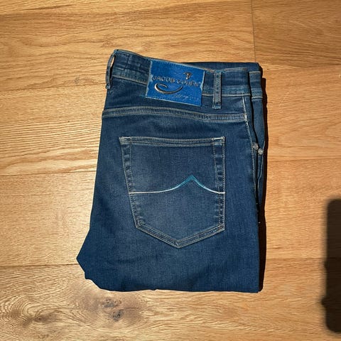 Jacob Cohën jeans for herre i blå denim. Buksen har størrelse S og livvidde W30. Rippes ved knærne. Pris kan forhandles, kontakt om interessert