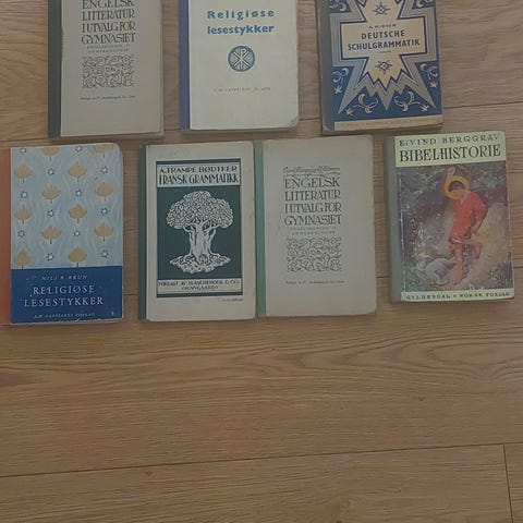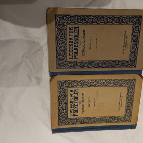 Samling med eldre skolebøker og lærebøker i norsk og historie. Blant bøkene er blant annet «Læsebok i morsmaalet», «Norges historie for gymnasiet» og «Læsebok for folkeskolen». Bøkene er i hardcover/innbundet utgave med varierende omslagsdesign og typisk eldre typografi. Egner seg som referanseverk, til samling av gamle skolebøker eller som kildemateriale for studier av eldre undervisningslitteratur og språkbruk.