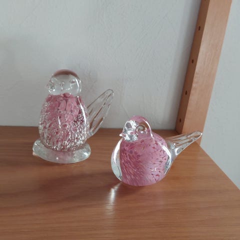 Fire kjempeflotte fugler i glass (Paul Hoff for Kosta Boda), selges fortrinnsvis samlet.