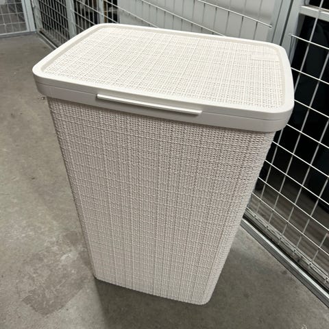 Skittentøyskurv i grå plast med lokk. Selger fordi jeg bruker en annen. Ta kontakt for en hyggelig handel!