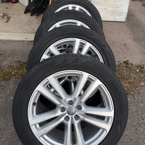 Felger er i 20x9 med et 38 boltsirkel og 5x112. Dekk er bridgestone fra 2019 med 5 og 6 mm mønster. Hjulsettet er til nyere audi Q7 og e-tron