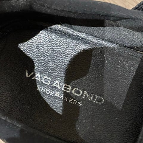 Vagabond sandaler i størrelse 38. Modellen har to brede remmer over foten og åpen tå. Sandalene er i en lys beige farge med mørk såle. Passer til hverdagsbruk og fritid i varme perioder.