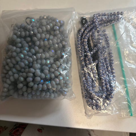 Perler blanding til smykkelaging i ulike nyanser av lilla og rosa. Inneholder perler i forskjellige former og størrelser, blant annet runde, fasetterte og avlange perler, samt noen metallfargede detaljer. Leveres samlet i en plastpose. Egner seg til hobbyprosjekter som armbånd, halskjeder og andre smykker eller dekorasjoner.