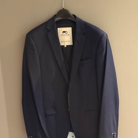Selger dressjakke og vest fra Moods of Norway i størrelse 48, slim fit.