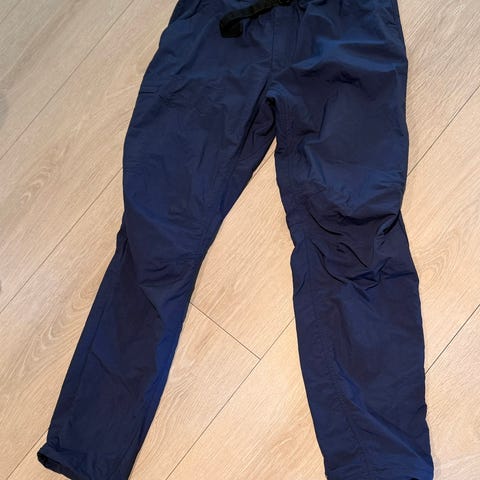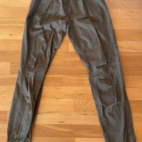 Bukse med elastikk og belte i livet. Strikksnøring på bena.