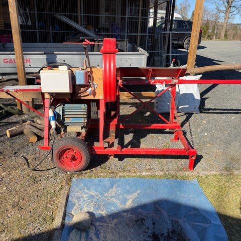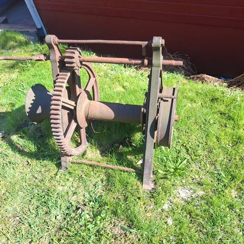 Vinsj med Honda G200 motor 5,5 hk bensinmotor. Vinsjen er montert i ramme med hjul for enklere forflytning. Bensinmotoren driver trommel med vaier via reimskiver. Tengt som trekkvinsj for ved og eks, elg. Tekniske detaljer som trekkraft, er jeg usikker på. Wire er 5 mm, ca 50m. Clutch er hjemme konstruert, men virker. Lite hjul på motor, til stort hjul, så lite hjul til vinsj. Motor vandrer litt på turtall, men med litt choche går den fint. Starter som Honda. Rensa forgasser. Pris er diskuterbar til en viss grad. Tyngde, har ikke vekt, men i rundt 35 - 40 kg. Selges som forevist, og uten garanti.
