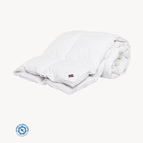 Dun og fjær er naturlige materialer som bidrar til å regulere temperaturen og opprettholde komforten hele natta.