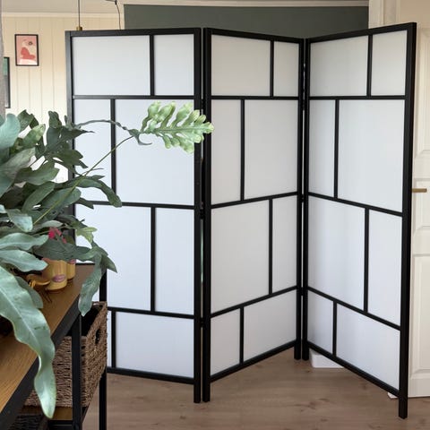 Kjempefin romdeler/skillevegg/skjermvegg i brunfarge (med ramme i naturtre farge) i en størrelse som er vanskelig å finne, dermed unik: 120 lang (når den er brettet helt ut), 130 høy. Lite brukt, som romdeler for kontorhjørnet. Den er som ny, kjøpt i utlandet. Vi må dessverre bli kvitt den pga ommøblering. Den kommer også med 4 bein som vi ikke har hatt bruk for.