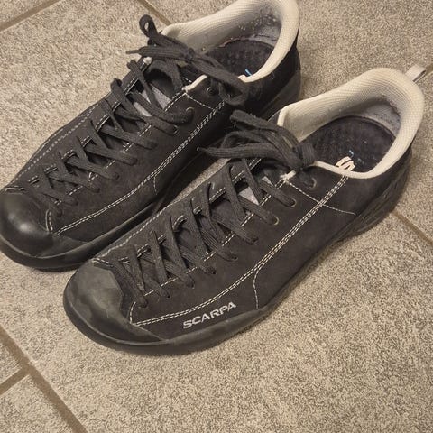 Selger et par Scarpa Mojito Fresh i str. 44 som er lite brukt. Grå med blå lisser.