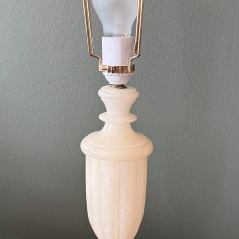 Bordlampe fra Høvik Verk i hvitt glass/opalinglass med lampeskjermholder. Eldre stikkontakt, men virker som den skal.