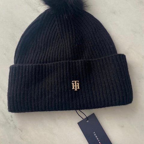 Polo Ralph Lauren lue for dame i beige farge. Modellen er ribbestrikket med oppbrett og har dusk på toppen. Størrelse one size. Passer til bruk på kalde dager og som tilbehør til hverdagsantrekk.