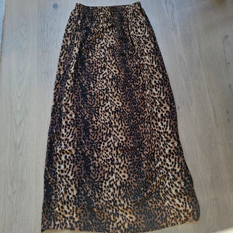 Et nydelig fotsidt skjørt i leopardmønstret sateng fra Catwalk junkie. Får desverre ikke brukt dette, så håper noen andre kan få mer glede av det. Ny pris var 1399, selger det for 500.