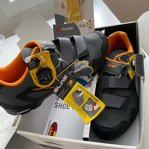 Sykkelsko str 42 selges, særdeles lite brukt da de var litt store. Til MTB klikkpedaler. Kan sendes.
