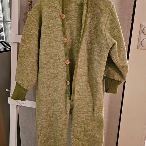 Kjempe søt hjemmesydd onepiece med ører på hetta. Den er sydd av ei jeg bestilte av på SoMe, den gang laget av Julie. Har du en gutt som er glad i kjøretøy er denne perfekt. Tekstilet heter frenc terry og er super mykt. Hun tok 750 kr for den. Den er lite brukt, men litt bruksflekker på knær.