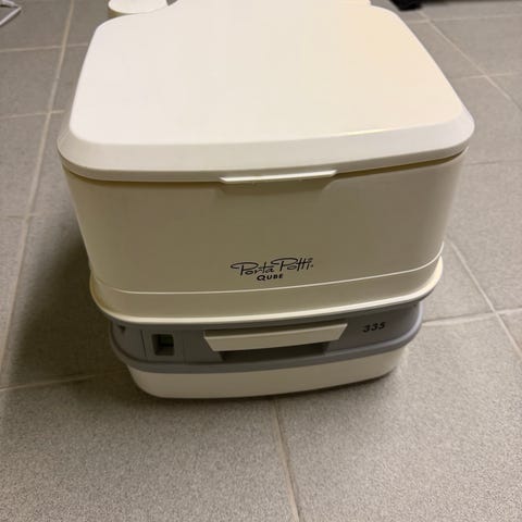 Selger et Thetford Campa Potti XG (kjøpt hos hyttetorget i 2023) portabelt toalett. Dette er en super løsning for hytte, båt, bobil, eller kanskje som en reddende engel mens du pusser opp badet hjemme.
