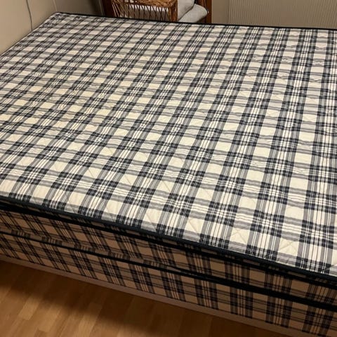 Dobbelseng med madrass og overmadrass.