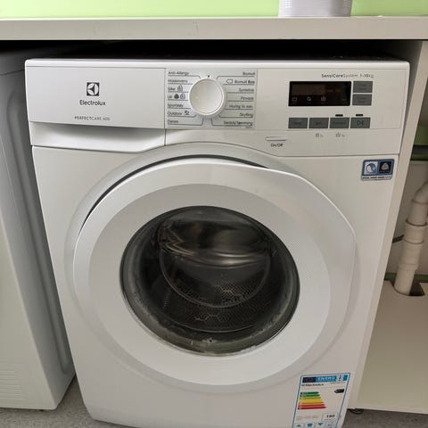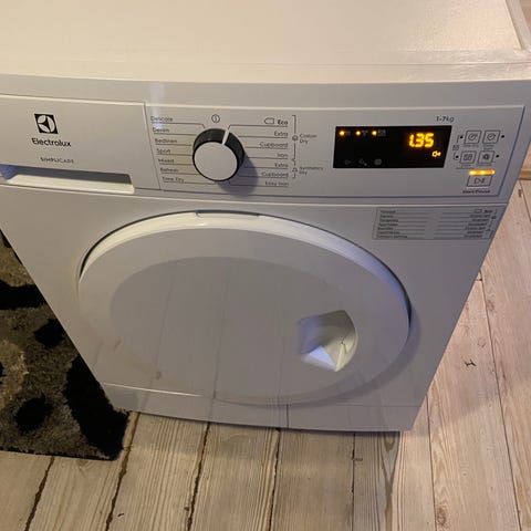 Vi selger tørketrommelen da vi har fått over til en kombinasjon. Den tørker godt og har slange en kan legge i avløpet sammen med vaskemaskinen slik en ikke trenger å tømme vanntanken.