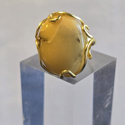 Gullbelagt sølvring 925 med liten checkerboard Safir ca 1,5 ct. Selve ringen er formet som en gren.