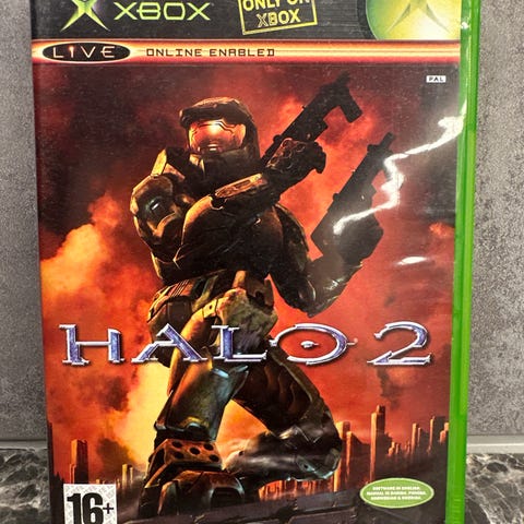 Microsoft Halo Combat Evolved Xbox spill. Originalt Xbox-spill på disk i grønt plastcover med omslag. Sjangerskytespill i science fiction-univers, utviklet for den første Xbox-konsollen. Spillet leveres på fysisk plate som vist på bildene, med trykket manual/innlegg i coveret. Egnet for én spiller og flerspiller via delt skjerm eller systemkobling, avhengig av konsoll og tilbehør. Aldersmerking og språk på omslag følger nordisk utgave som avbildet.
