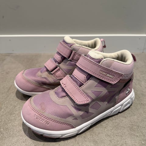 Viking barnesko med Gore-Tex-membran for vanntett og pustende bruk. Modellen er unisex og har overdel i tekstil og syntetisk materiale i lilla nyanser. Skoene har to borrelåsstropper for enkel justering og av- og påkledning. Yttersålen er i gummi med mønster for godt grep. Egnet som hverdagssko og utesko for barn i variert vær.