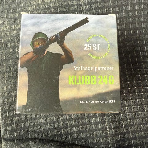 Eldre ammunisjon er bly og kan kun benyttes på bane. Kobberskuddene er til jakt. Kal 12/76.