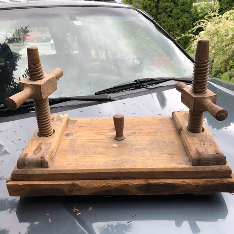 Kommer fra eske med maritime objekter. Norsk antikk kjøttøks i metall med tradisjonelt utformet blad og håndtak i bein. Øksen har et kraftig, rektangulært blad i stål, egnet for grovere kjøkkenarbeid som oppdeling av kjøtt og bein. Håndtaket er festet med nagler. Passer som funksjonelt verktøy på kjøkkenet eller som et eldre redskap for samlere og dekorasjon. Eventuelle mål og vekt kan legges til av selger for mer presis informasjon.