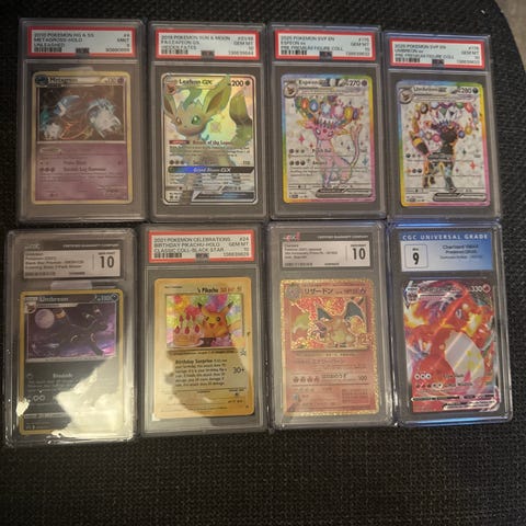 Fem PSA 10 kort selges samlet - Må kunne hentes i Oslo (Skøyen)