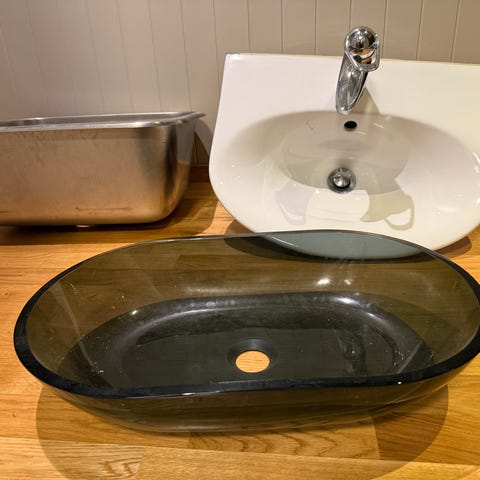 3 stk vask/servanter og 8 blandebatterier /kraner