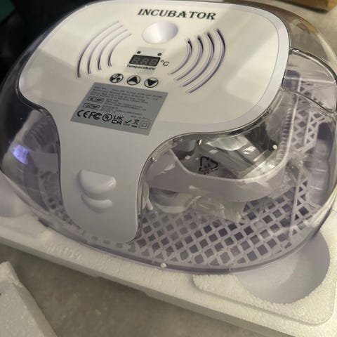Stabil og god Hemel rugemaskin. Lite brukt, med gode resultater når klekk. 36 egg(evhengig av størrelse på rugeegg). Flere brett medfølger. Automatisk vending. Maskin har stått innendørs, og fremstår som ny.