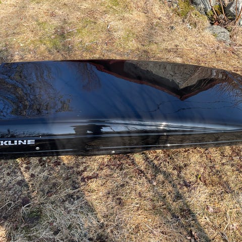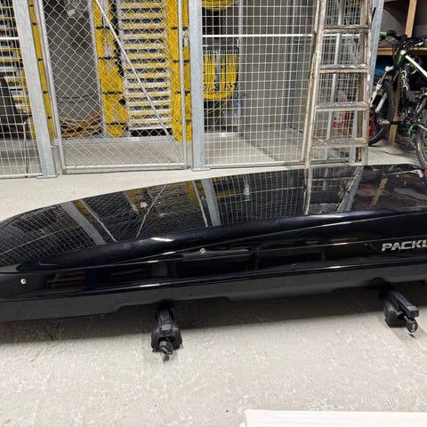 Packline takboks i svart utførelse. Aerodynamisk formet boks for montering på takstativ. Egnet for ekstra bagasje, ski og annet utstyr på bilturer.