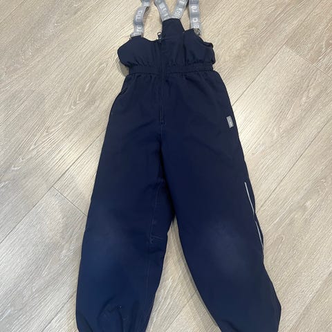 Vinterbukse fra Reima med fotstrikk og høy i livet med justerbare seler selges for 250 kroner. Som vist på bildene har buksa litt slitasje, men har ingen hull og er ellers i god stand.