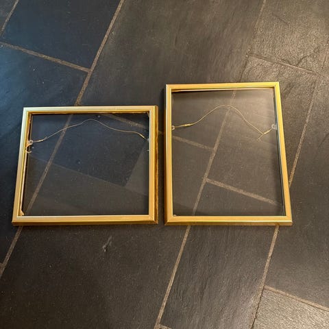 Rammen har noe normal bruksslitasje (litt hvitmaling på en side), men fremstår hel og pen. Perfekt om du ønsker en rimelig og fin ramme til veggen.