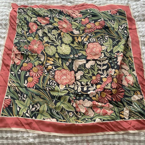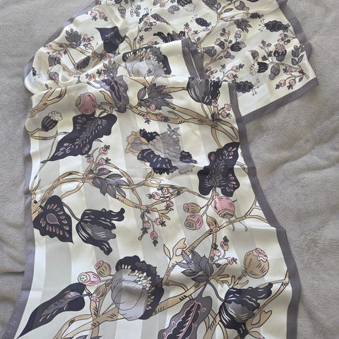 JIM THOMPSON. Jim Thompson silkeskjerf i thaistil med blomstermotiv, firkantet, tropiske blomster, nytt.