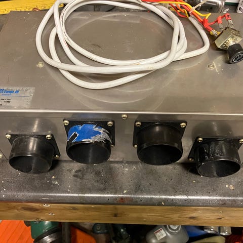 Enheten er merket med modellnummer E62113 C120W Display og drives med 12–24V DC, maks 5,0A. Benyttet i seilbåt fra 2009, fungerte som normalt da denne ble byttet med en Axiom i 2025. Bakpanelet har tilkoblinger for strøm og eksterne enheter, beskyttet med gummideksler.